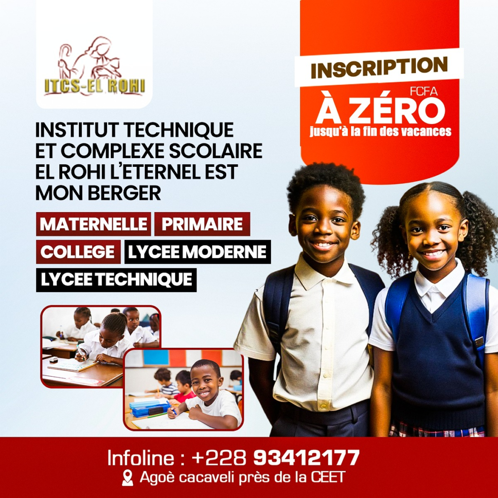 Situé à Agoè Cacavéli, près de la CEET, ITCS-EL ROHI est facilement accessible aux familles de la capitale et de ses environs. Les parents peuvent contacter directement l’administration via WhatsApp au lien suivant ou appeler au +228 93412177 pour toute information complémentaire.